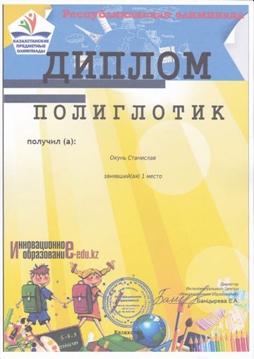 3Ә сынып оқушысы Сайлаубек Қаракөз  қазақ тілі пәнінен ұйымдастырылған Республикалық дәстүрлі интернет олимпиадасына қатысып, І дәрежелі дипломмен марапатталды.