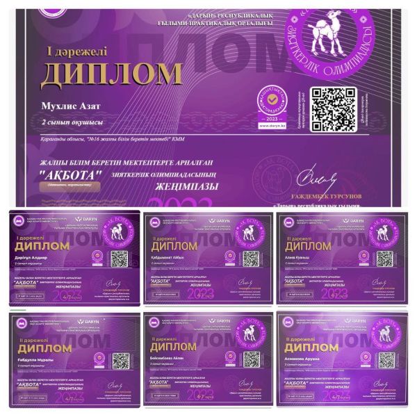Жалпы білім беретін мектептерге арналған "Ақбота" зияткерлік олимпиадасының жеңімпаздары