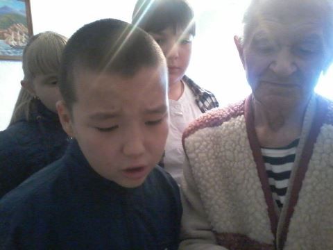 Ученики 6Б класса с учителем истории Экажевой В.В поздравили ветерана ВОВ Игнатова Юрия Тихоновича с днем пожилых людей.
