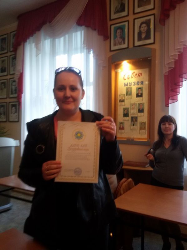 №16 мектептің бастапқы ардагерлер ұйымы Экажева Виктория Викторовнаға Қазыбек би атындағы аудан мектептері арасында Ұлы Жеңістің 70 жылдығына арналған "Учитель!" Даже через много лет зажже…