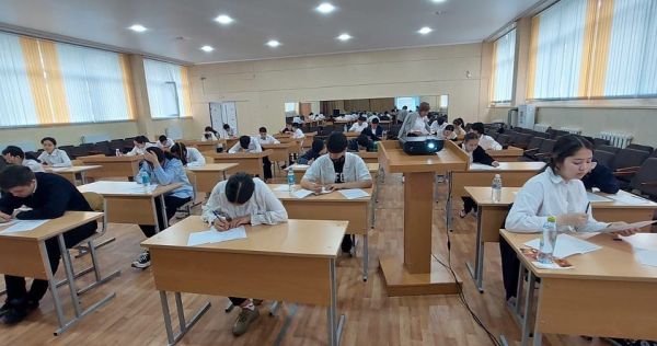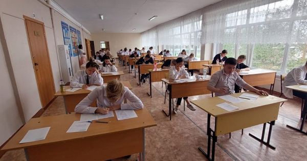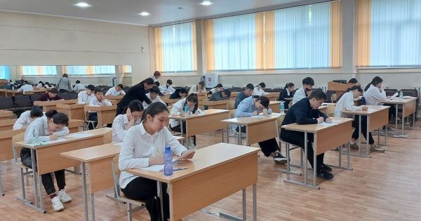 №16 ЖББМ КММ-нде 9 сынып оқушыларының қорытынды емтихандары санитарлық-гигиеналық талаптарды сақтай отырып өткізуде.