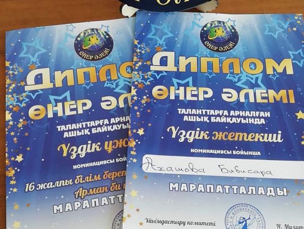 Өнер әлемі таланттар байқауының Гран-при женымпазы, 1А сынып окушысы Әдебиет Луиза.
