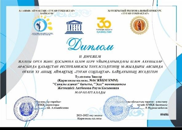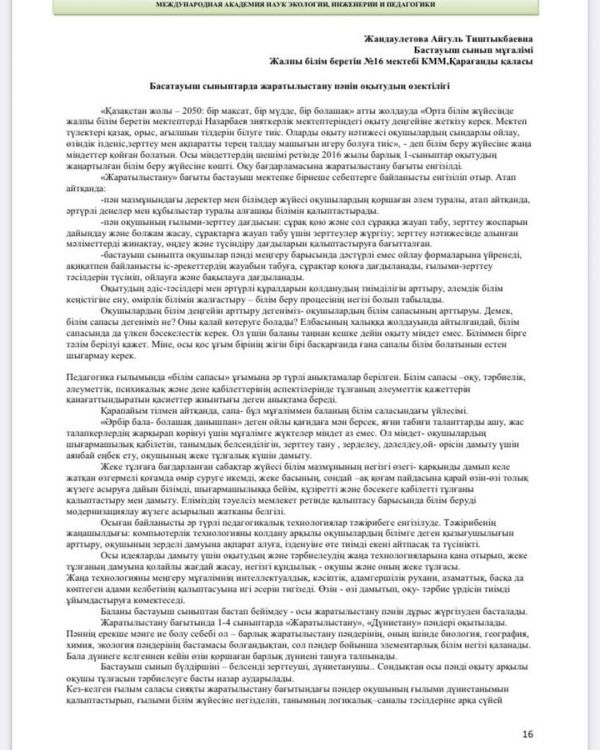 Халықаралық ғылыми-әдістемелік “МАҚСАТ “журналына мақала жариялады.