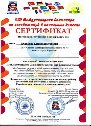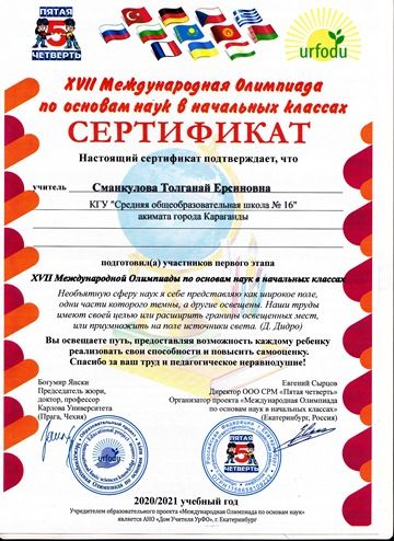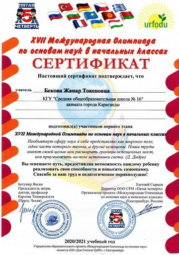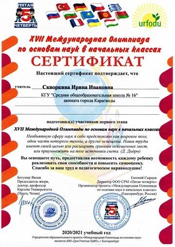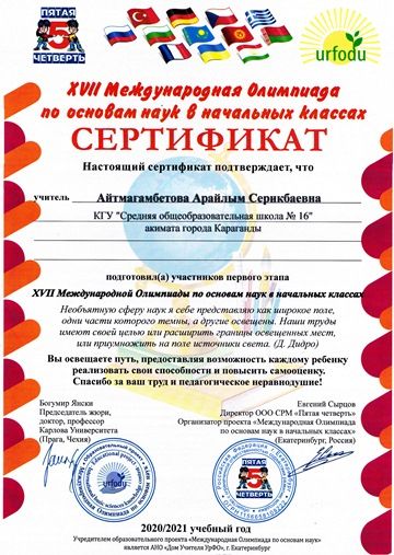 Бастауыш сыныптардағы ғылым негіздері бойынша XVII Халықаралық олимпиада.