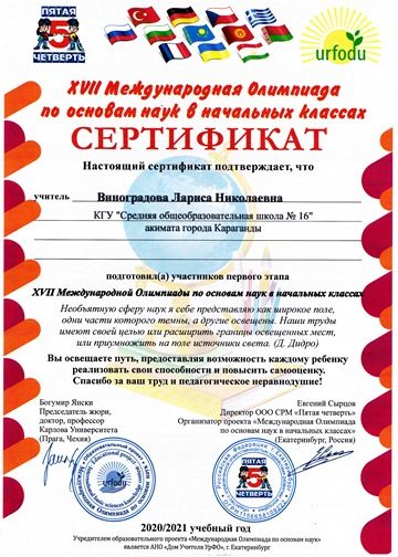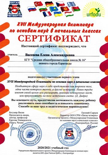 XVII Международный олимпиада по основам наук в начальных классах. Учителя начальных классов.