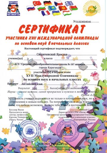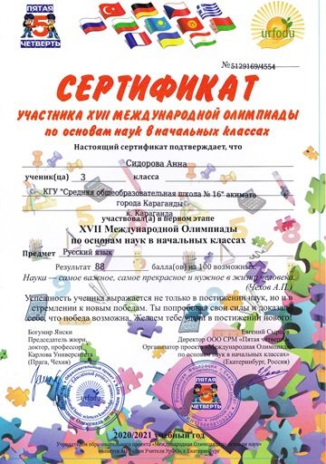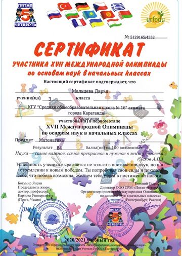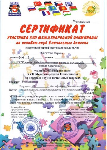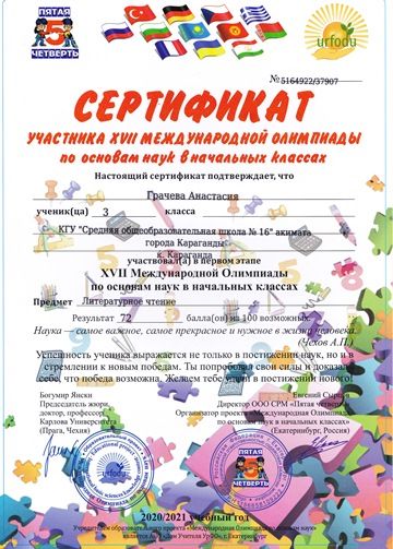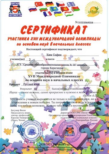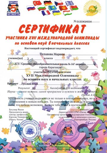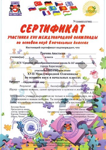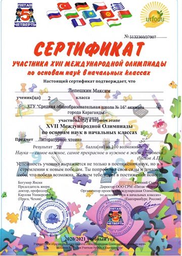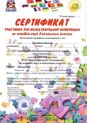 Бастауыш сыныптардағы ғылым негіздері бойынша XVII Халықаралық олимпиада.