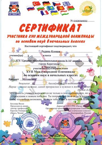 XVII Международный олимпиада по основам наук в начальных классах.