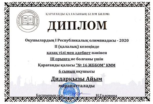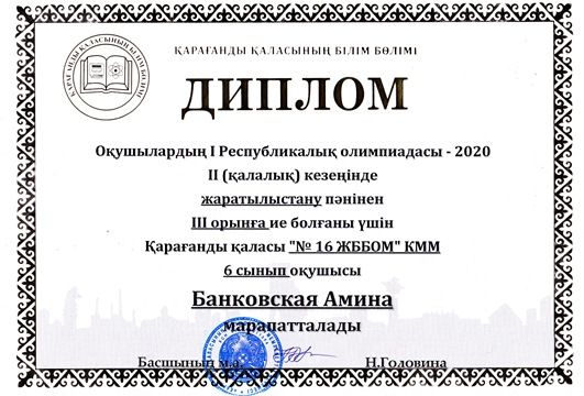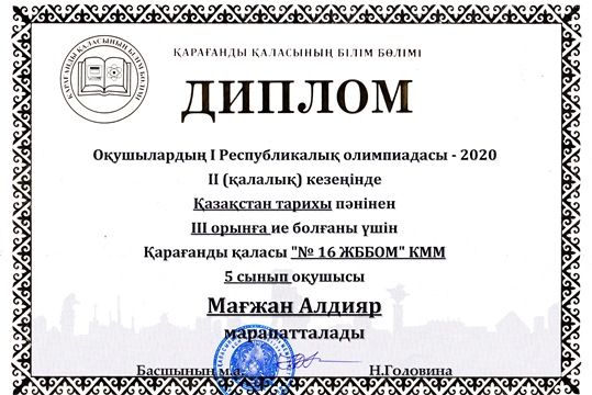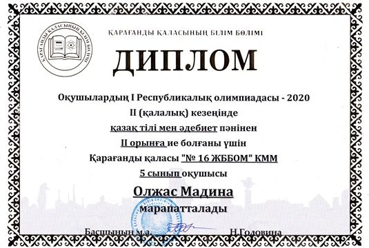 І Республикалық олимпиадасы-2020 ІІ (қалалық) кезеңінде жүлделі орындарға ие болған оқушыларды құттықтаймыз!!!