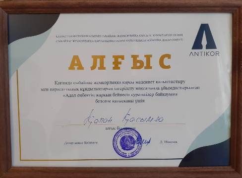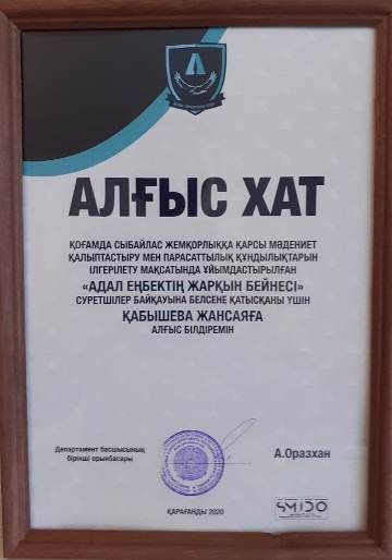 "Адал еңбектің жарқын бейнесі" суретшілер байқауына белсене қатысқан оқушылар Алғыс хатпен марапатталды.