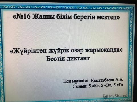 "XXI ғасыр-сауатты ұрпақ ғасыры" тақырыбында функционалдық сауаттылықтарын қалыптастыру негізінде 5А, 5 Ә сынып оқушылар арасында "Бестік диктант" атты іс-шара өтілді. Өткізген Е…
