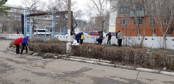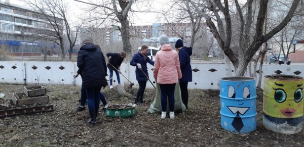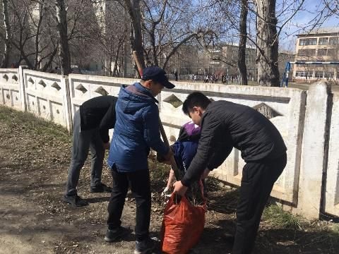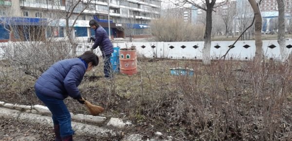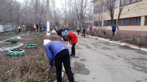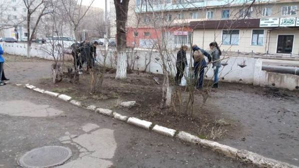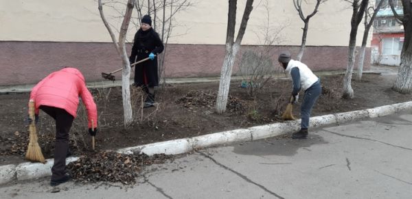 Мектеп ауласында тазалау жұмыстары жасалды.