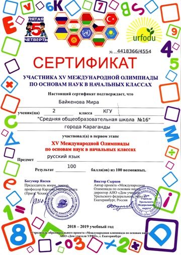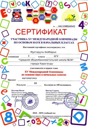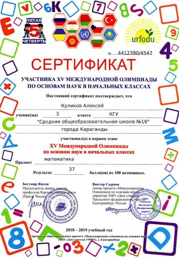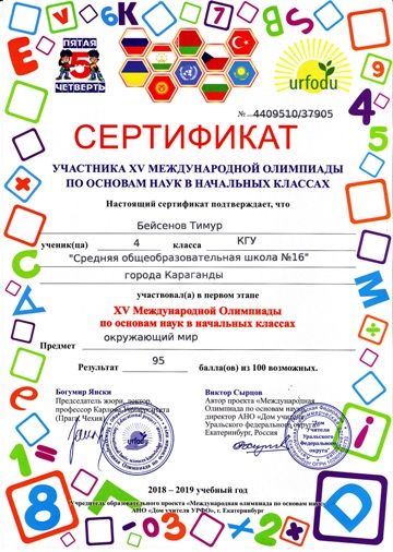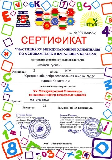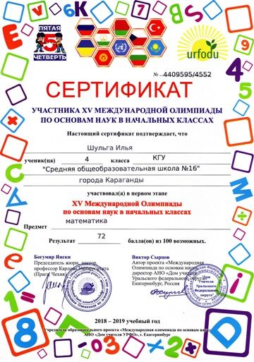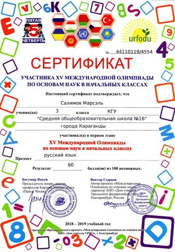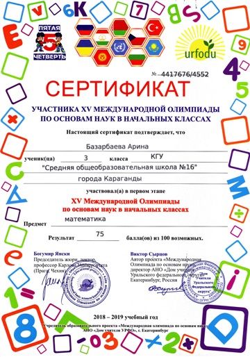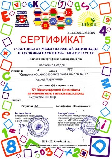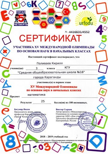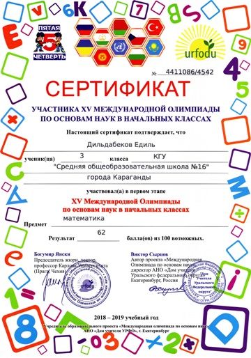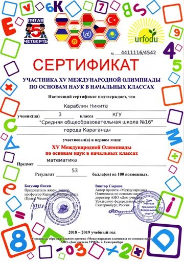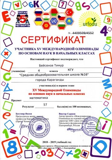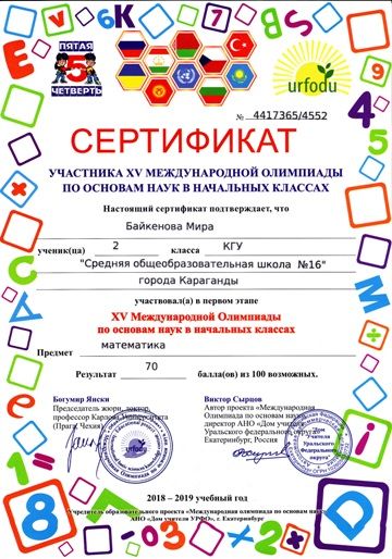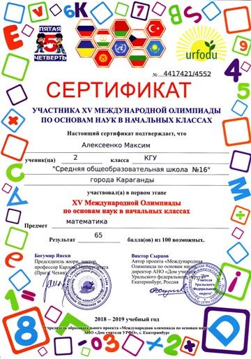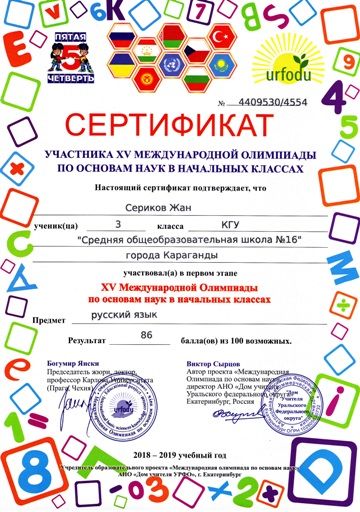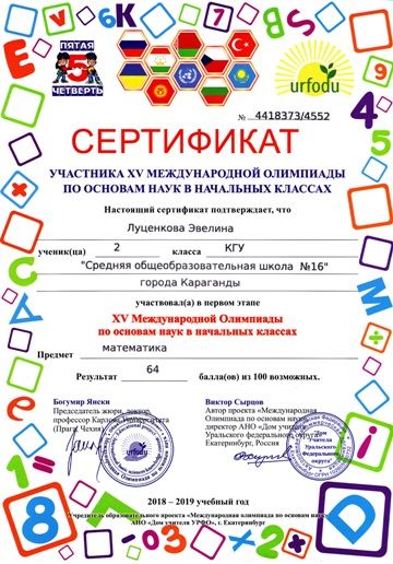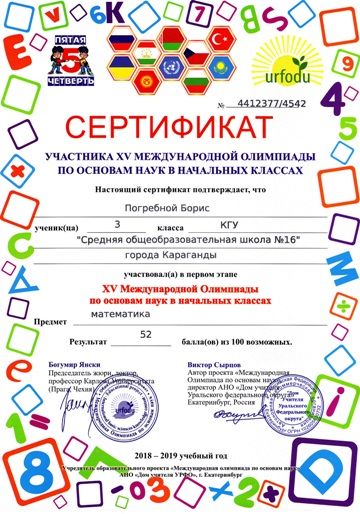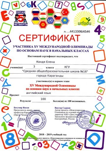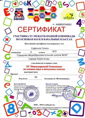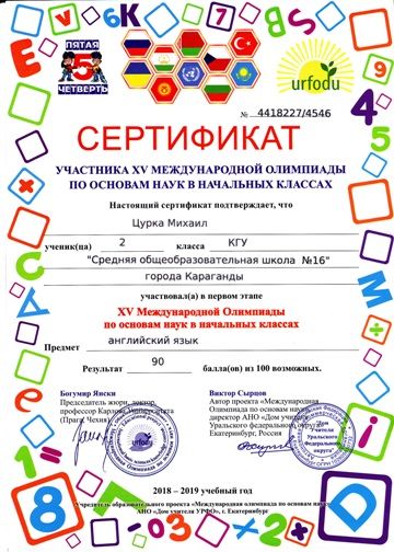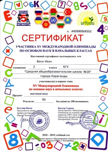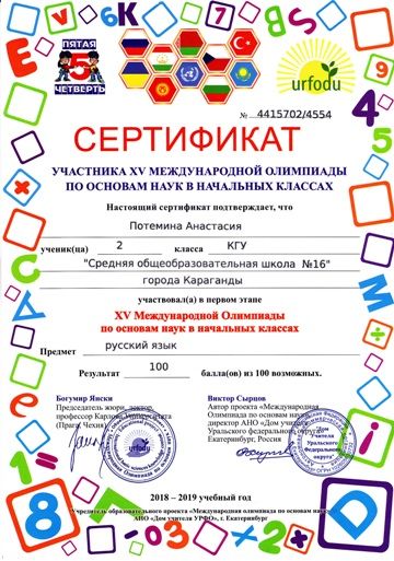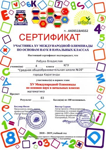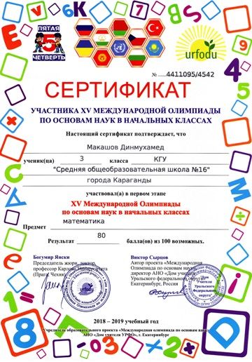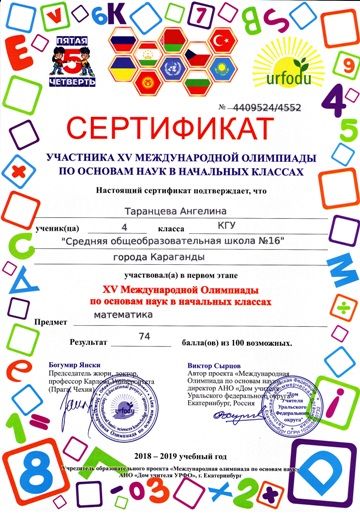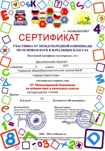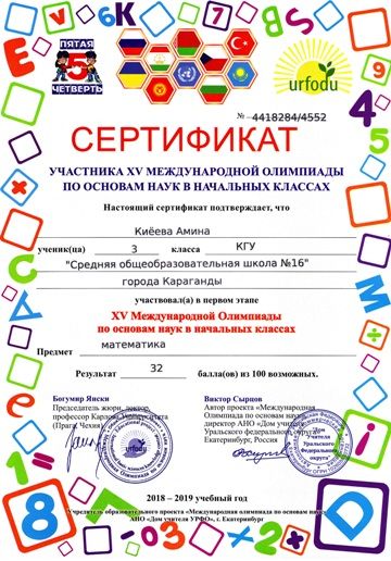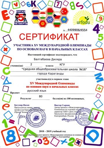 ХV международной олимпиады по основам наук сертификатами награждены учителя начальных классов.