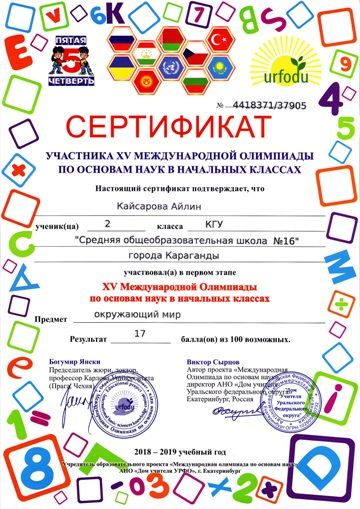 XV международная олимпиада по основам наук в начальных классах