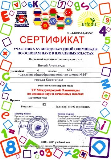 XV международная олимпиада по основам наук в начальных классах. 4 классы.