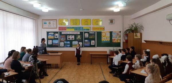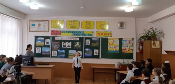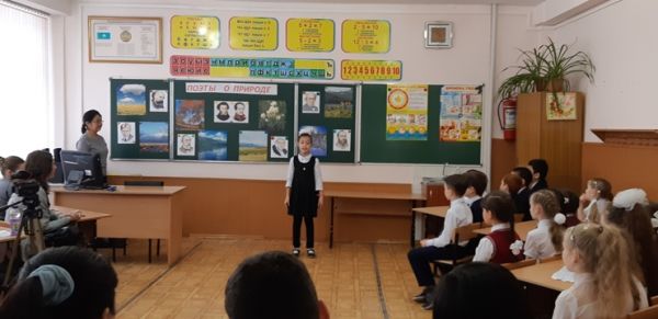 В школе в рамках обновленного содержания по воспитательной работе сплотились три шанырака. Шефство старших ребят содействовало проведению конкурса юных чтецов. Тема мероприятия "Поэты о природе…