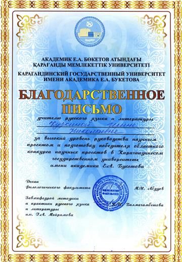 Қарағанды Экономикалық университетінің алғыс хатымен география пәнінің мұғалімі Пшенбаева Шолпан Казкеновна марапатталды.