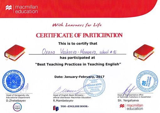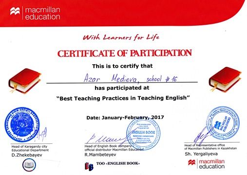 Сертификаты  учителям английского языка за участие "Best Teaching Practices in Teaching English".