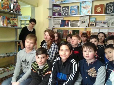 24.02.2017г. учитель русского языка и литературы Григорьевская А.А. совместно с 6В классом посетила  централизованную библиотеку. Цель акции: "Один регион-одна книга"