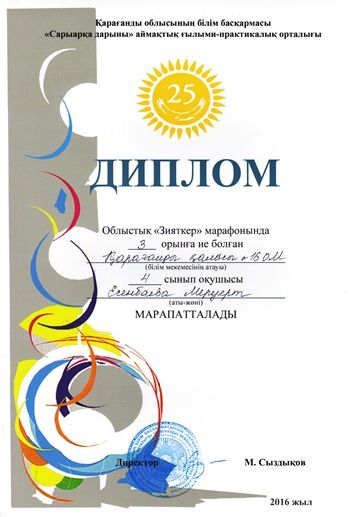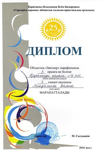 Облыстық "Зияткер" марафонына қатысып жүлделі орындарға ие болған 3 сынып оқушыларын құттықтаймыз!
