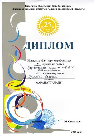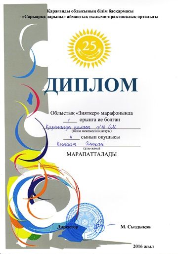 Облыстық "Зияткер" марафонына қатысып жүлделі орындарға ие болған 4 сынып оқушыларын құттықтаймыз!