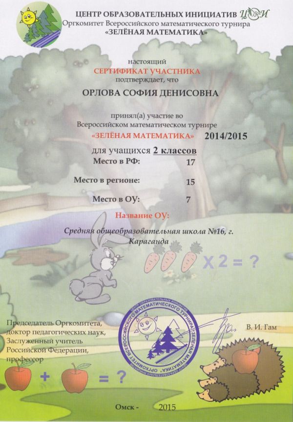 ПОЗДРАВЛЯЕМ ПОБЕДИТЕЛЕЙ И ПРИЗЕРОВ ВСЕРОССИЙСКОГО МАТЕМАТИЧЕСКОГО ТУРНИРА "ЗЕЛЕНАЯ МАТЕМАТИКА"