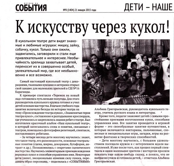 Самый настоящий кукольный театр с декоративными, ткаными куклами и актерами открыл свой занавес для маленьких зрителей в СОШ №16. Премьеру спектакля "Теремок на новый лад" готовила А…
