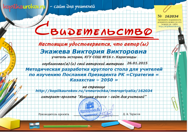 Поздравляем Экажеву Викторию Викторовну, учителя истории за публикацию своих авторских материалов: КВН по истории "Рыцари круглого стола", в разделе взаимовыручки для учителей INFOUROK мет…