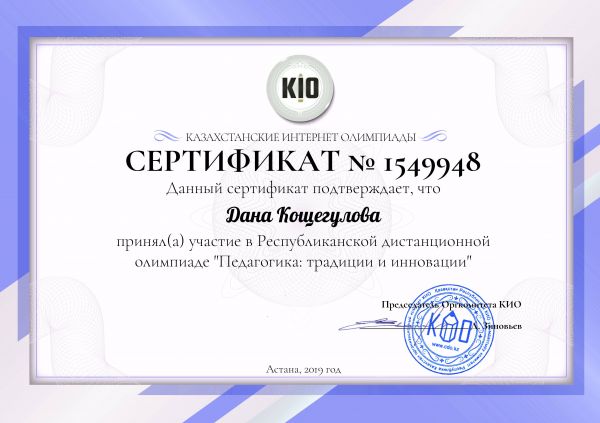 Республиканская дистанционная олимпиада. Учитель русского языка и литературы Кощегулова Д.Б.