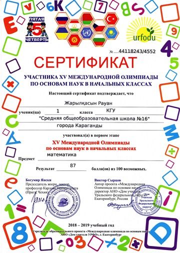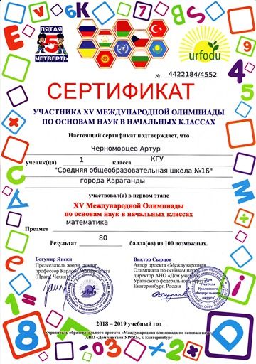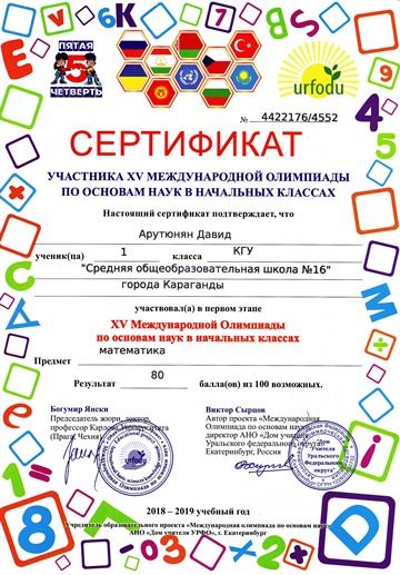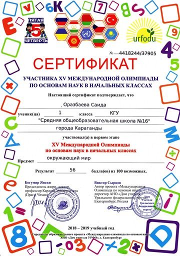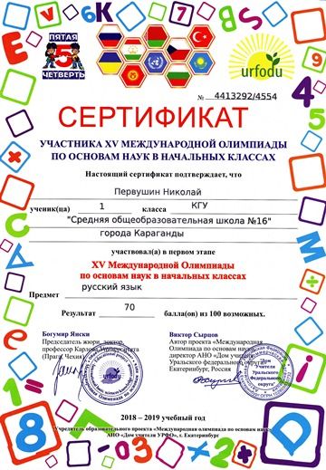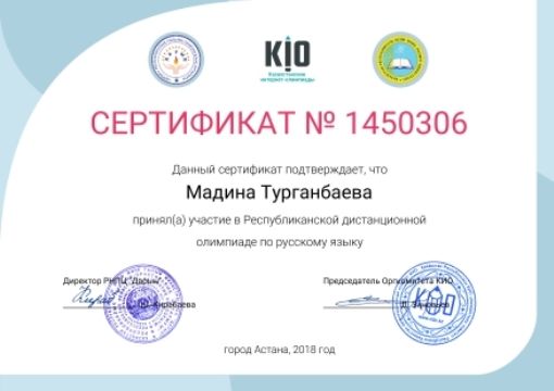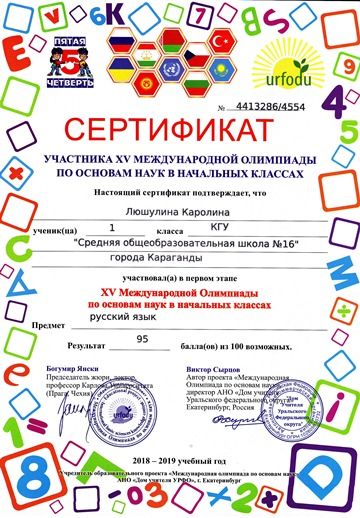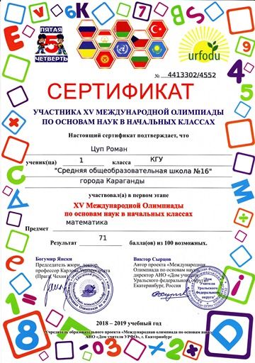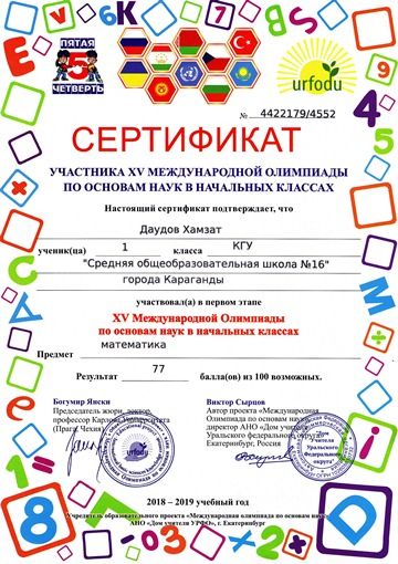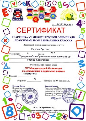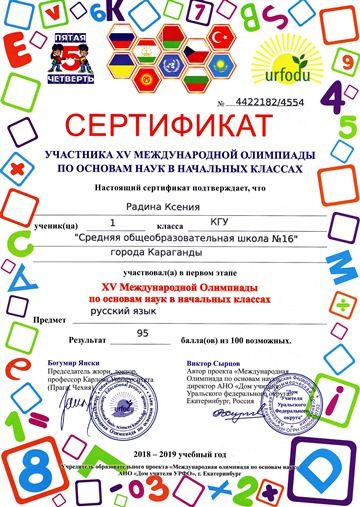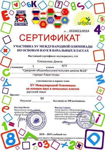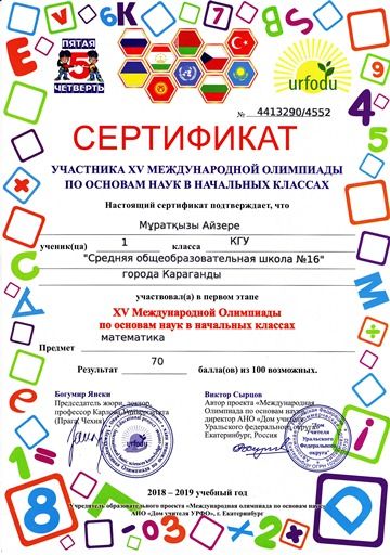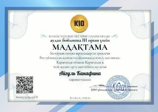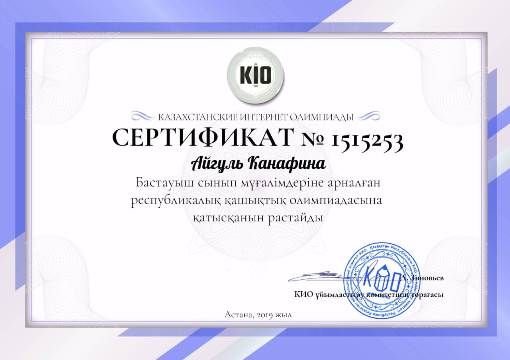 Бастауыш сынып мұғалімі Канафина А.Б Республикалық Ұлттық интернет олимпиадасы қатысып, жүлделі орындарға ие болды.