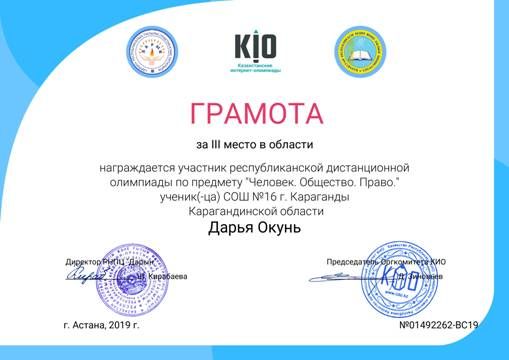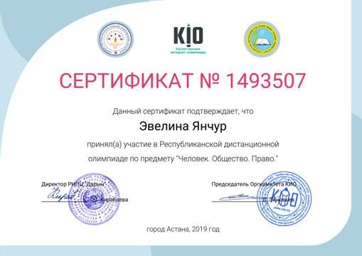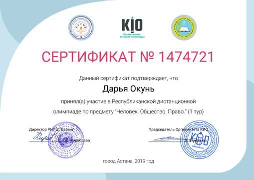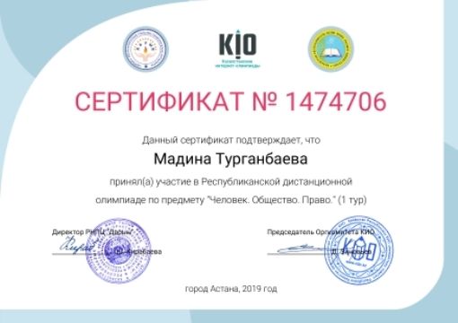 Республиканская дистанционная олимпиада по предмету "Человек. Общество. Право".