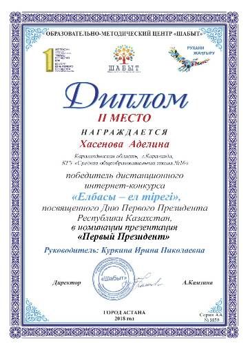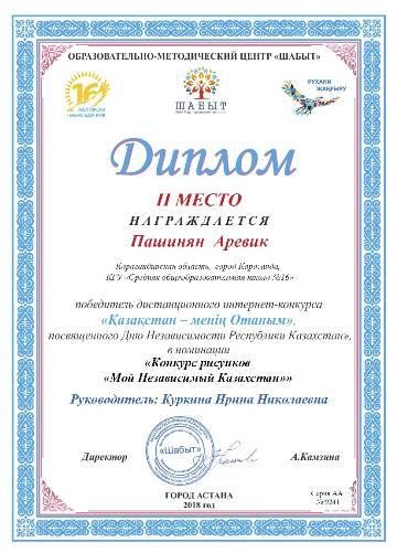 Дистанционный интернет-конкурс "Қазақстан-менің Отаным", "Елбасы-ел тірегі" посвященный Дню Первого Президента Республики Казахстан.