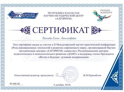 "Рухани жаңғыру" мемлекеттік бағдарламасын насихаттау мақсатында өткен "Тарихи тұлға және рухани жаңғыру" атты Республикалық жас зерттеушілердің V Құрылтайына қатысқан үшін 10А с…