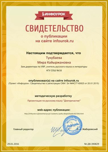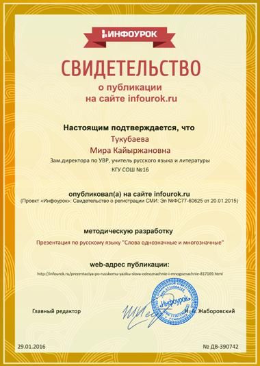 №16 ЖББ ОМ КММ директорының ОТЖ жөніндегі орынбасары М.К.Тукубаева  infourok.kz сайтында өз әдістемелік әзірлемесін жариялады.