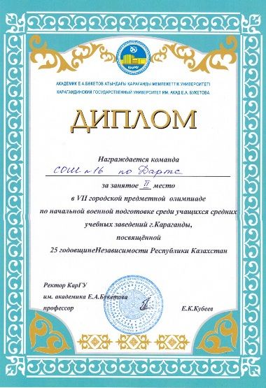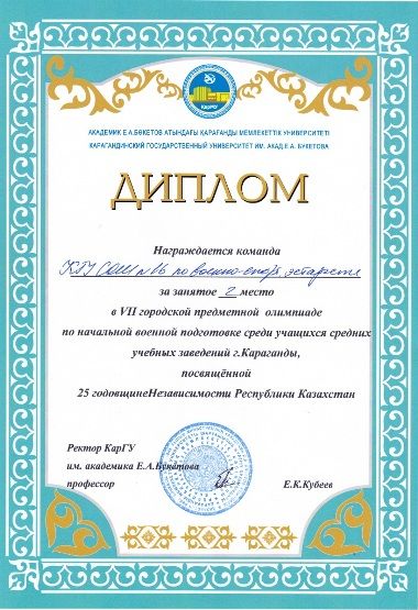 АЛҒАШҚЫ ӘСКЕРИ ДАЙЫНДЫҚ ПӘНІ БОЙЫНША VII ҚАЛАЛЫҚ ПӘН ОЛИМПИАДАСЫ