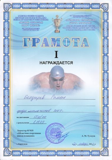 №16 ЖББ ОМ 3Г сынып оқушысы Болдырев Роман ұлдар арасындағы жүзуден І орын алды.