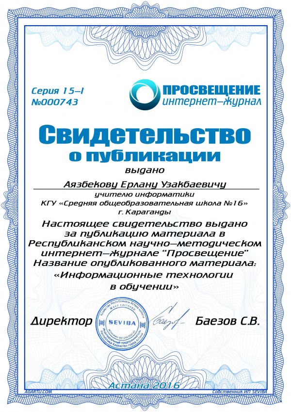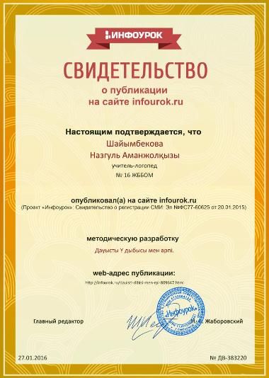 №16 ЖББ ОМ логопед-мұғалімі Н.А.Шайымбекова infourok.kz сайтында өз әдістемелік әзірлемелерін жариялады.
