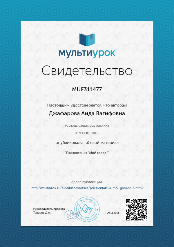 "Мультиурок" сайтында бастауыш сынып мұғалімі А.В.Джафарованың сыныптан тыс іс-шарасының әзірлемесі мен презентациясы жарияланды.