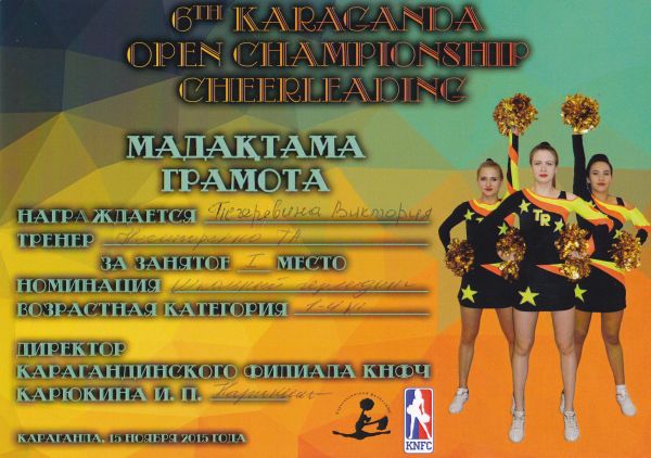 2"В" сынып оқушысы Печеревина Виктория "Школьный черлидинг" номинациясында І орынды иеленді.