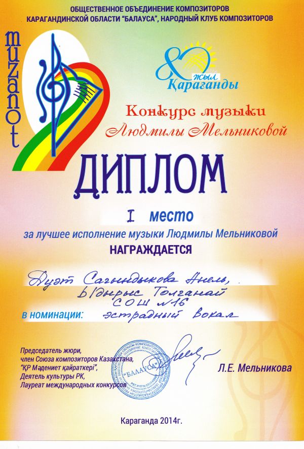 Қарағанды қаласының жалпы білім беретін орта мектептерінің оқушылары арасында өткен Қарағанды жайлы әндерді үздік орындау "Қарағандының алтын дауысы" атты қалалық байқауда ІІІ жас ерекшелі…