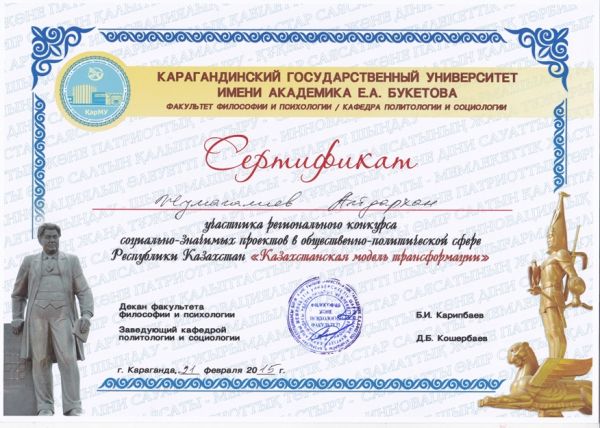 11 сынып оқушылары Биткозов Олжас, Жумагалиев Айдархан, Мейрам Ханзатты облыстық "Казахстанская модель трансформации" әлеуметтік маңызды жобалар байқауындағы жеңісімен құттықтаймыз! Жобаны…