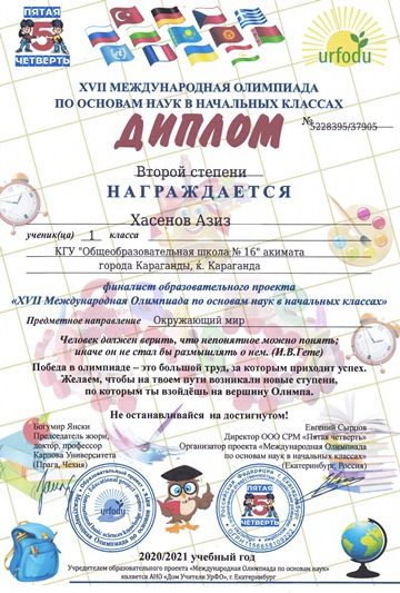 "Алтын күз" атты республикалық қашықтықтан өткізілген шығармашылық сайысына балалармен белсенді қатсқаны үшін Ибраеа А.Б. және сол сайыста жүлделі 1 орынға ие болғны үшін Қойшыбаева…
