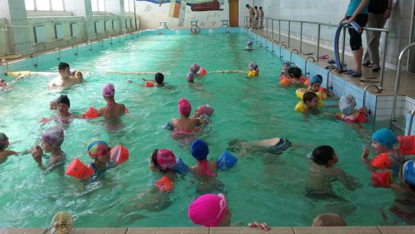 Мы плаваем в бассейне. Освежающие процедуры в летнем лагере "Сказка"