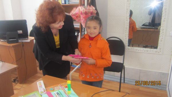 Социальный педагог гимназии Иванова Любовь Александровна поздравила Шалимову Тамирис, учащуюся 1''а'' класса и Сафронову Евгению, учащуюся 2 ''г'' класса с началом уч…