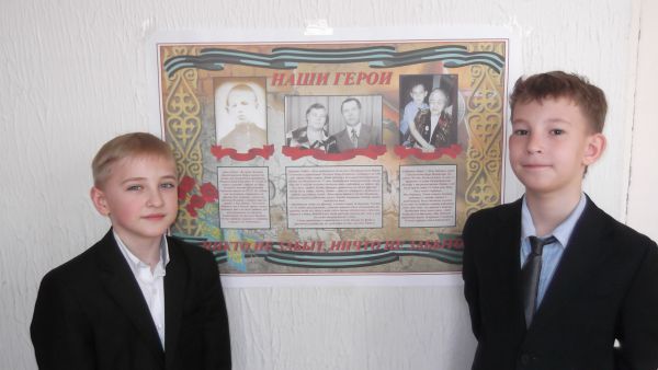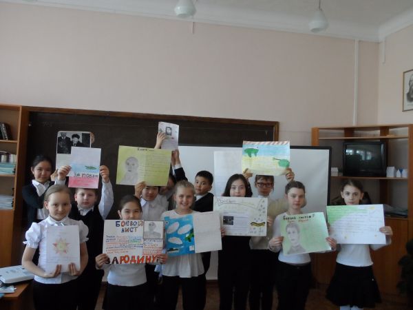 Ребята из 4 «в» класса выпустили Боевой листок, посвященный Памяти своих родственников, ковавших Великую Победу в годы Великой Отечественной войны. Попов Дмитрий, Глебов Никита, Субботин…
