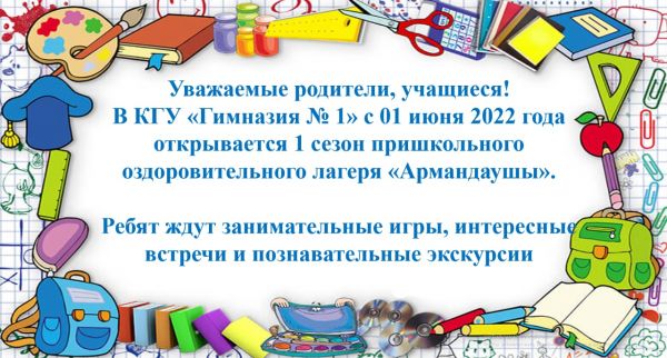 В КГУ «Гимназия № 1» с 01 июня 2022 года открывается 1 сезон пришкольного оздоровительного лагеря «Армандаушы».