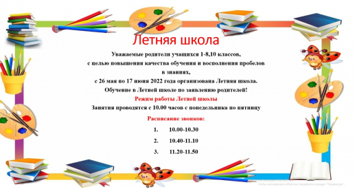 с 26 мая по 17 июня 2022 года организована Летняя школа.&nbs…