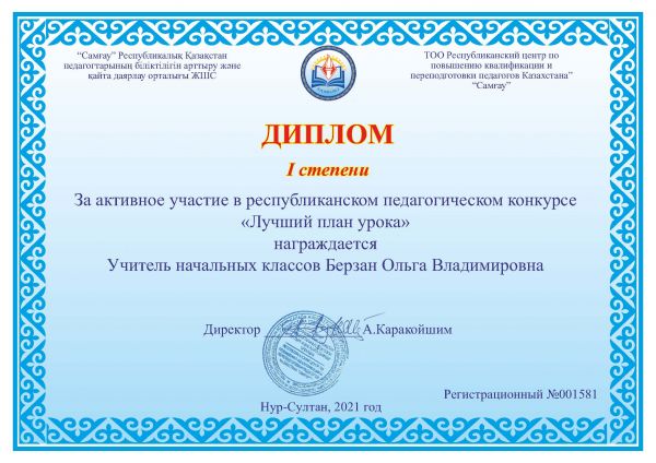 Дипломом 1 степени награждается Берзан О.В.