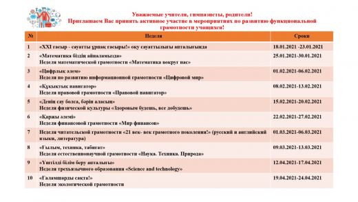 Уважаемые учителя, гимназисты, родители! Приглашаем Вас принять активное участие в мероприятиях по развитию функциональной грамотности учащихся!