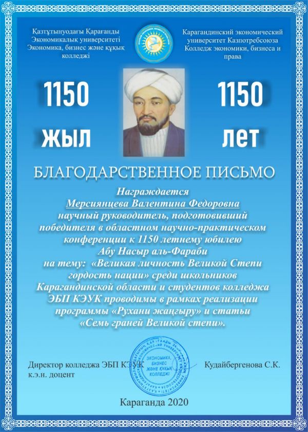 Научно-практическая конференция, посвящённая 1150 летнему юбилею Абу Насыр аль Фараби