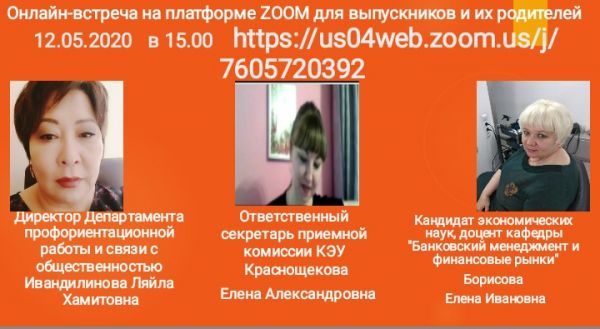 12 мая в 15.00 на платформе zoom будет проходить онлайн встреча с Директором Департамента профориентационной работы и связям с общественностью Ивадилин…